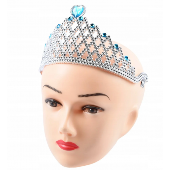 Mavi Kalpli Gümüş Renk Kraliçe Tacı Prenses Tacı